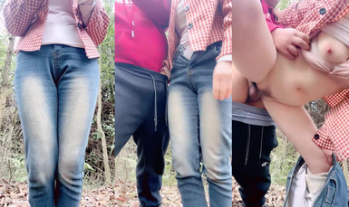 騷貨與炮友在樹林中激情啪啪啪站立著無套後入狂操一頓